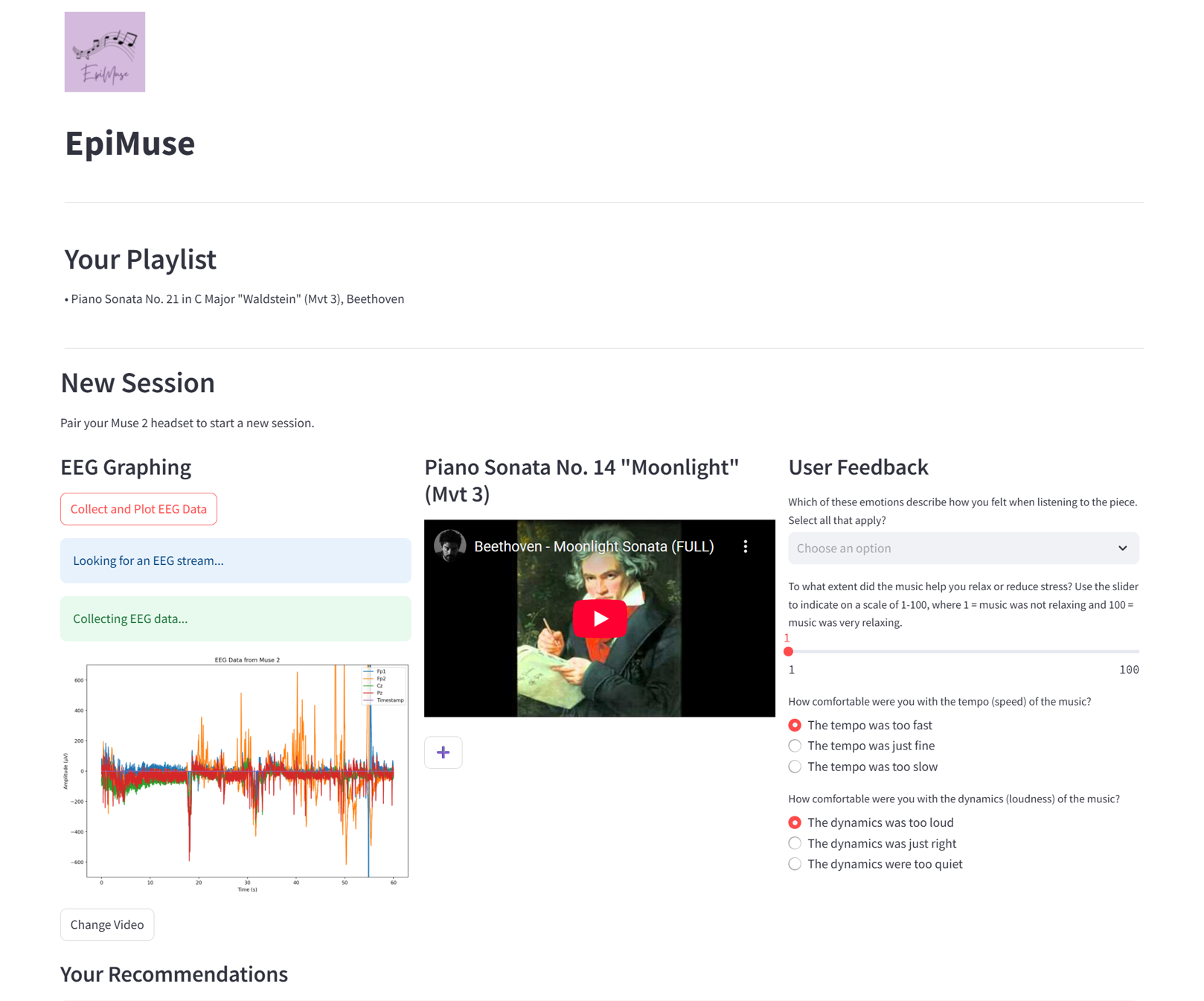 Building on a study I conducted at Neuropedia UAE to investigate the effects of Mozart's music on the EEGs of epileptic patients, I built EpiMuse: a webapp that provides personalized music therapy to epileptic patients using the Muse 2 Headset. My paper was accepted to the prestigious MIT Undergraduate Research Technology Conference (URTC) where I had the privilege of presenting EpiMuse.