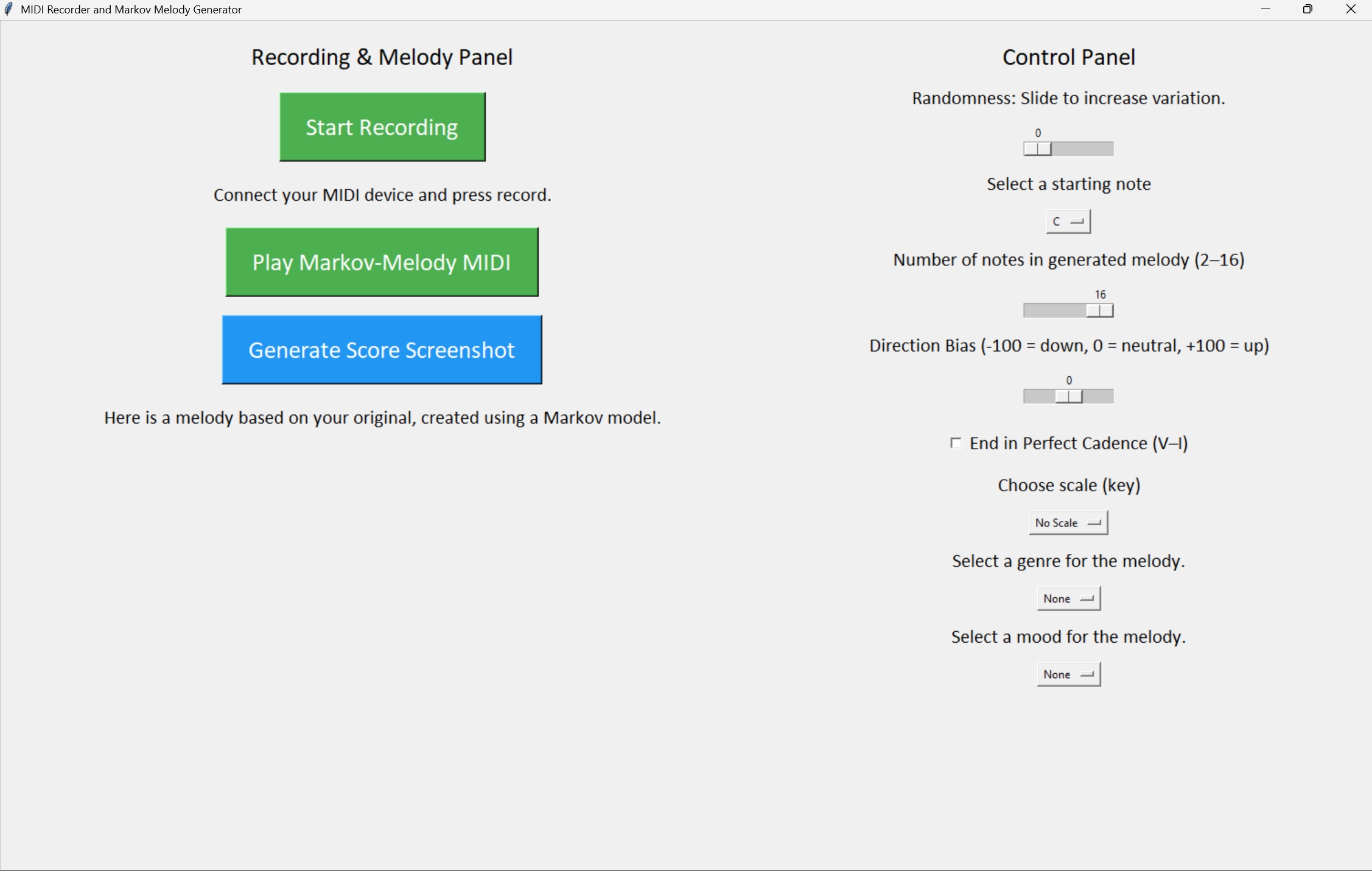 I am currently working with Dr. Advait Sarkar (University of Cambridge) to conduct a human-computer-interaction study. I have built my own software that uses Markov Chains to generate melodies as a research tool. Using this software, we are interviewing N=12 musicians to understand their experience composing with AI music tools like the software we have developed. I had the privilege of presenting this research at the CCIR Student Symposium 2025 at Kings College, Cambridge.